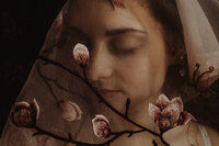 Tra veli impalpabili, tessuti couture e luce soffusa, interpretando la sposa in chiave intima e poetica.